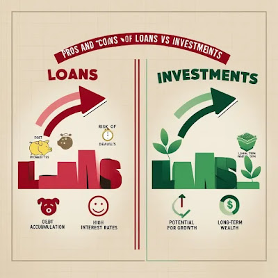 Loans and investments are two different approaches to managing your finances. A loan involves borrowing money that must be repaid over time, usually with interest. It can provide quick access to funds for specific needs, but also comes with obligations like monthly payments and interest costs.